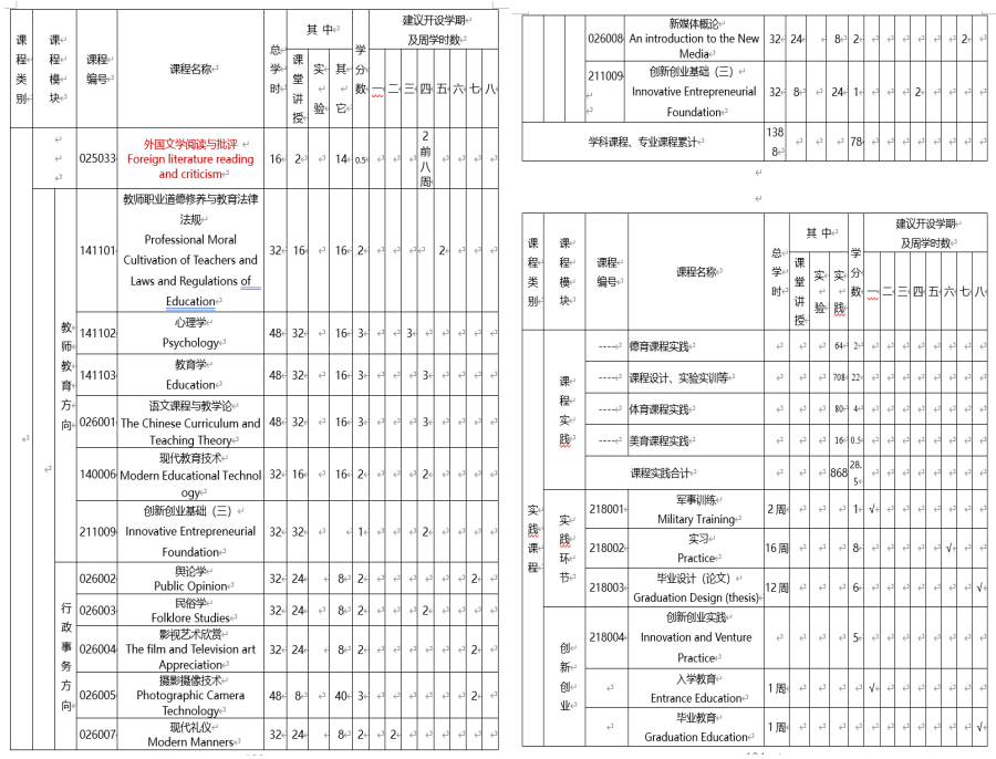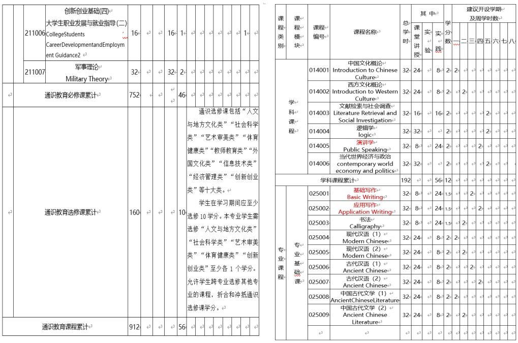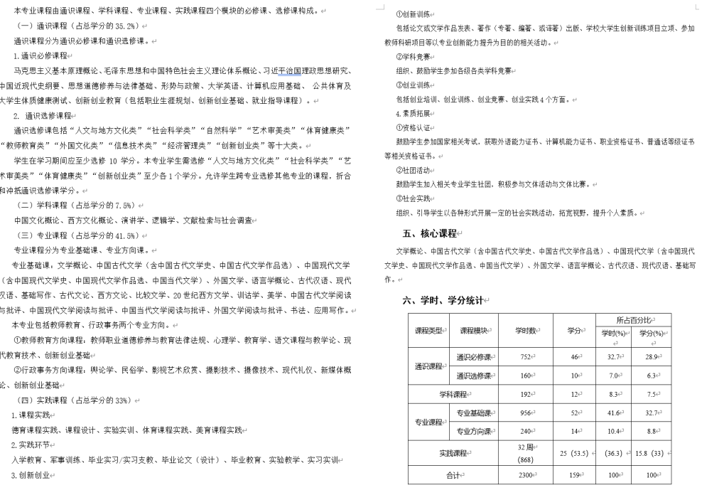汉语言文学专业人才培养方案(2016版)