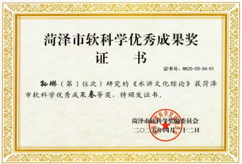 菏泽市软科学优秀成果三等奖(2025):“水浒文化综论”