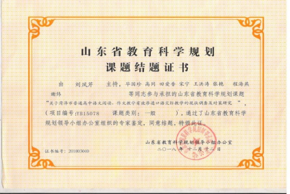 山东省教育科学规划项目(2015-2018):“关于菏泽市普通高中语文阅读、作文教学有效渗透口语交际教学的现状调查及对策研究”