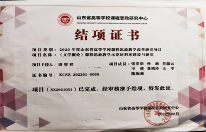 山东省高等学校课程思政教学改革研究项目(2020-2022):“《文学概论》课程思政教学示范材料库建设与研究”