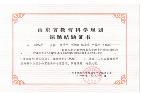 山东省教育科学规划项目(2011-2014):“菏泽市农村小学口语交际教学的现状调查及对策研究”
