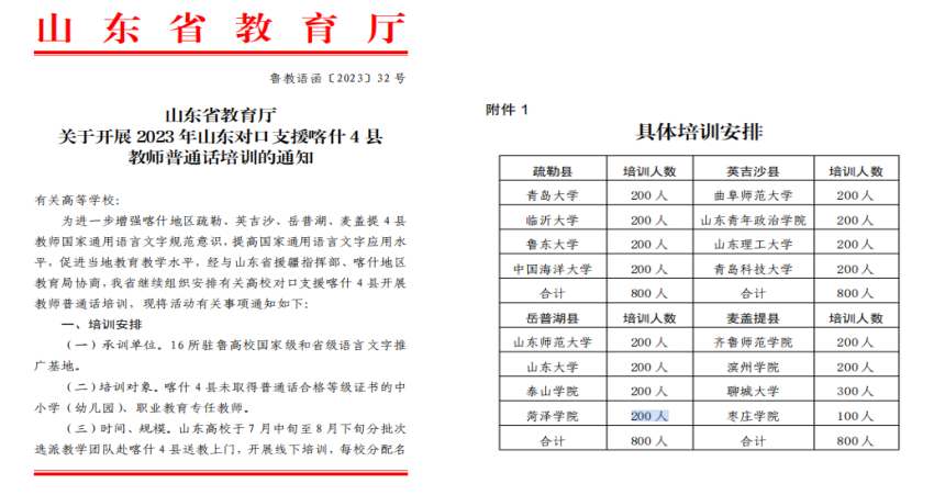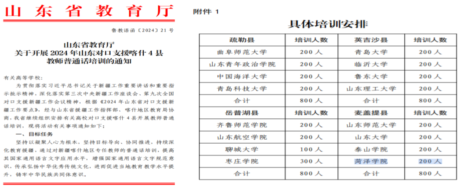 省教育厅关于开展 2024 年山东对口支援喀什4县教师普通话培训