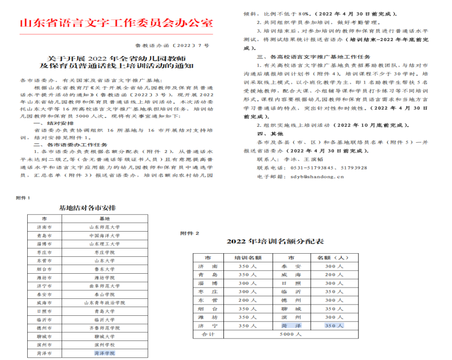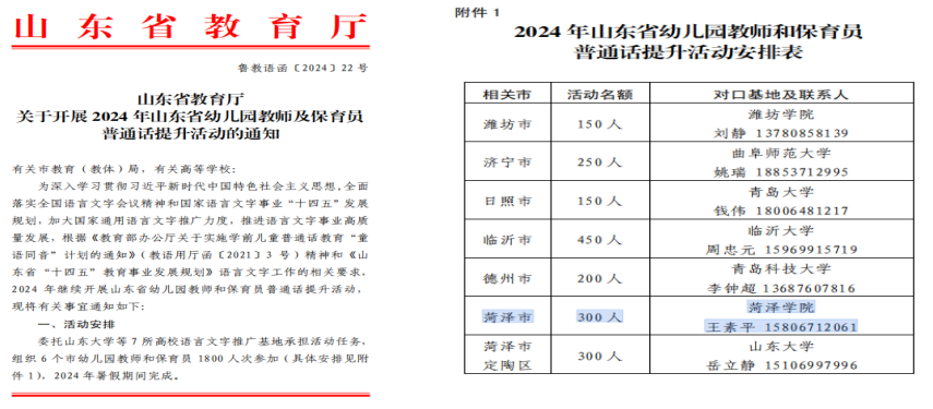 省教育厅开展 2024 年山东省幼儿园教师及保育员普通话提升